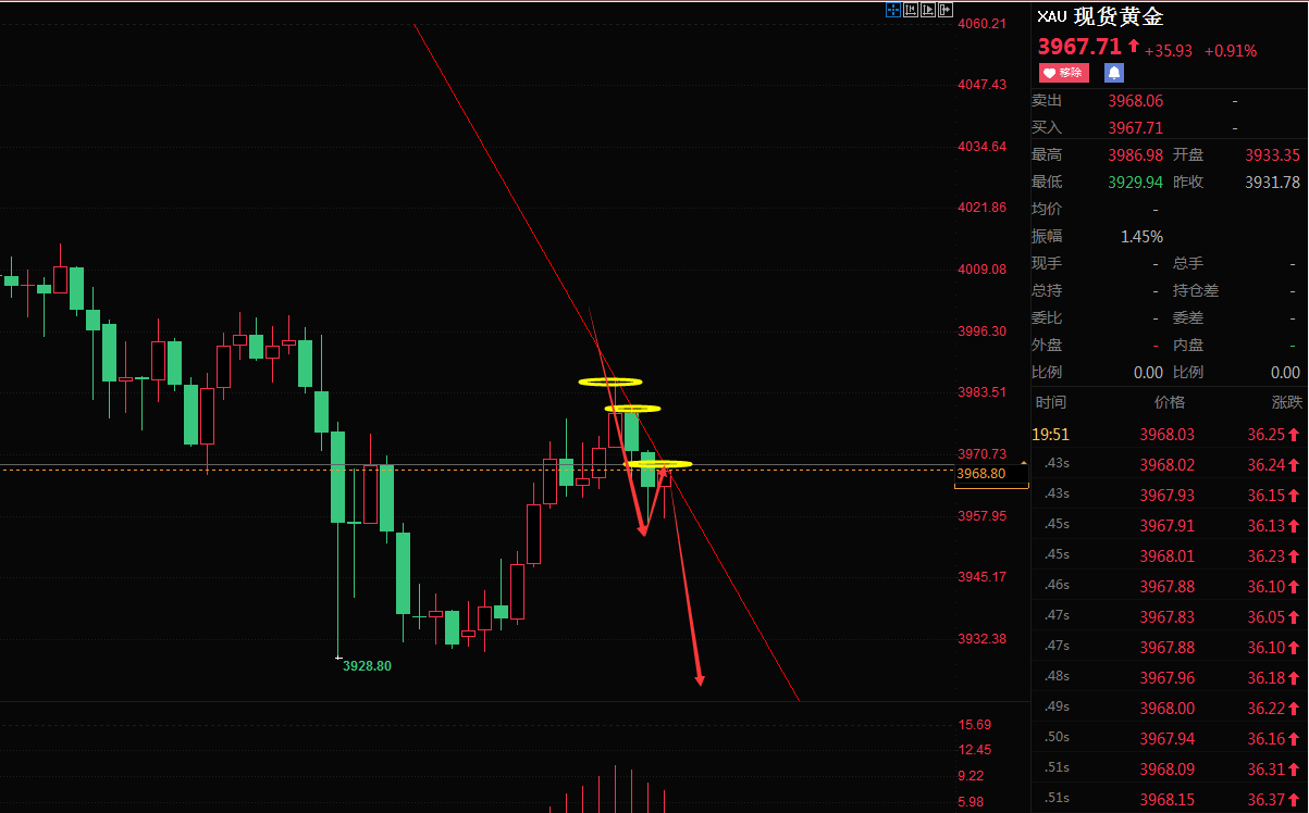 王杨:黄金美盘现价3976直接空!
